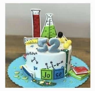 Para quienes viven enamorados de la química, esta tarta personalizada de química en Madrid es el regalo perfecto. En Dulcevida by Tania creamos diseños únicos con tubos de ensayo, moléculas, fórmulas químicas y elementos de la tabla periódica, impresos directamente sobre la galleta para una calidad fotográfica impresionante. Perfecta para celebrar el cumpleaños de estudiantes de química, profesores, farmacéuticos o científicos. Personaliza con su nombre, edad y los elementos o fórmulas que más le representen. Una forma dulce y original de celebrar su amor por la ciencia. Bizcocho artesanal y crema deliciosa que combina perfectamente pasión científica con sabor irresistible.