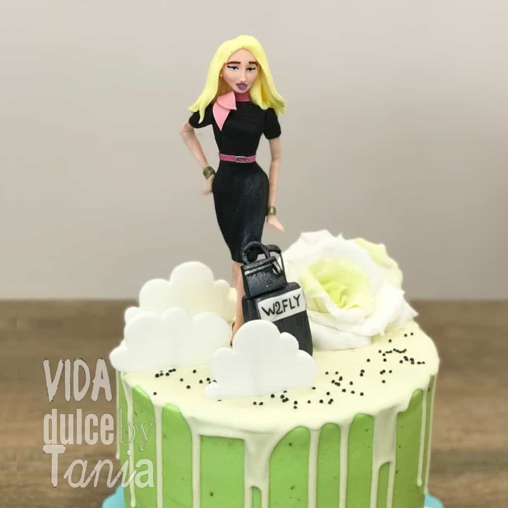 ¿Celebras el cumpleaños de una azafata o amante de la aviación? Nuestra tarta azafata en el aire es el homenaje perfecto a quienes surcan los cielos. Con diseño temático aeronáutico, nubes, aviones y la elegante figura de azafata, esta tarta personalizada en Madrid captura la esencia de volar con estilo.